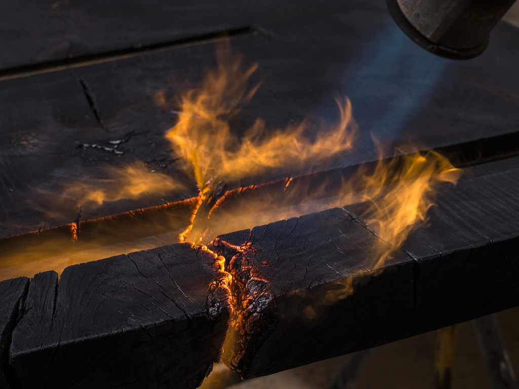 Da sich Feuer nicht wirklich beherrschen lässt, war es spannend zu beobachten, was das Feuer von sich aus tut. Und was das Holz macht, wenn es mit Feuer in Berührung kommt. Die richtige Dosierung des Feuers war ein herausfordernder Prozess: Es sollte eine Metamorphose stattfinden, aber keine Zerstörung.