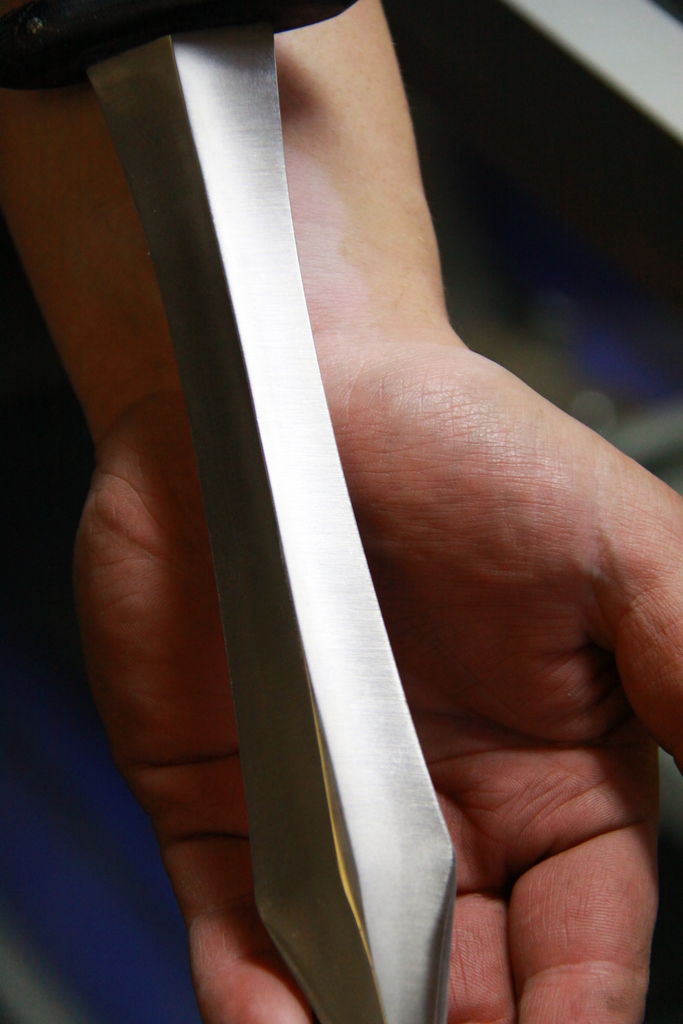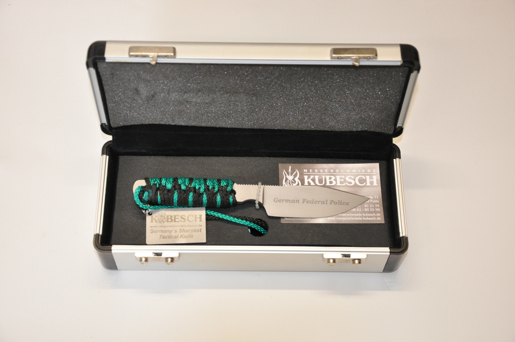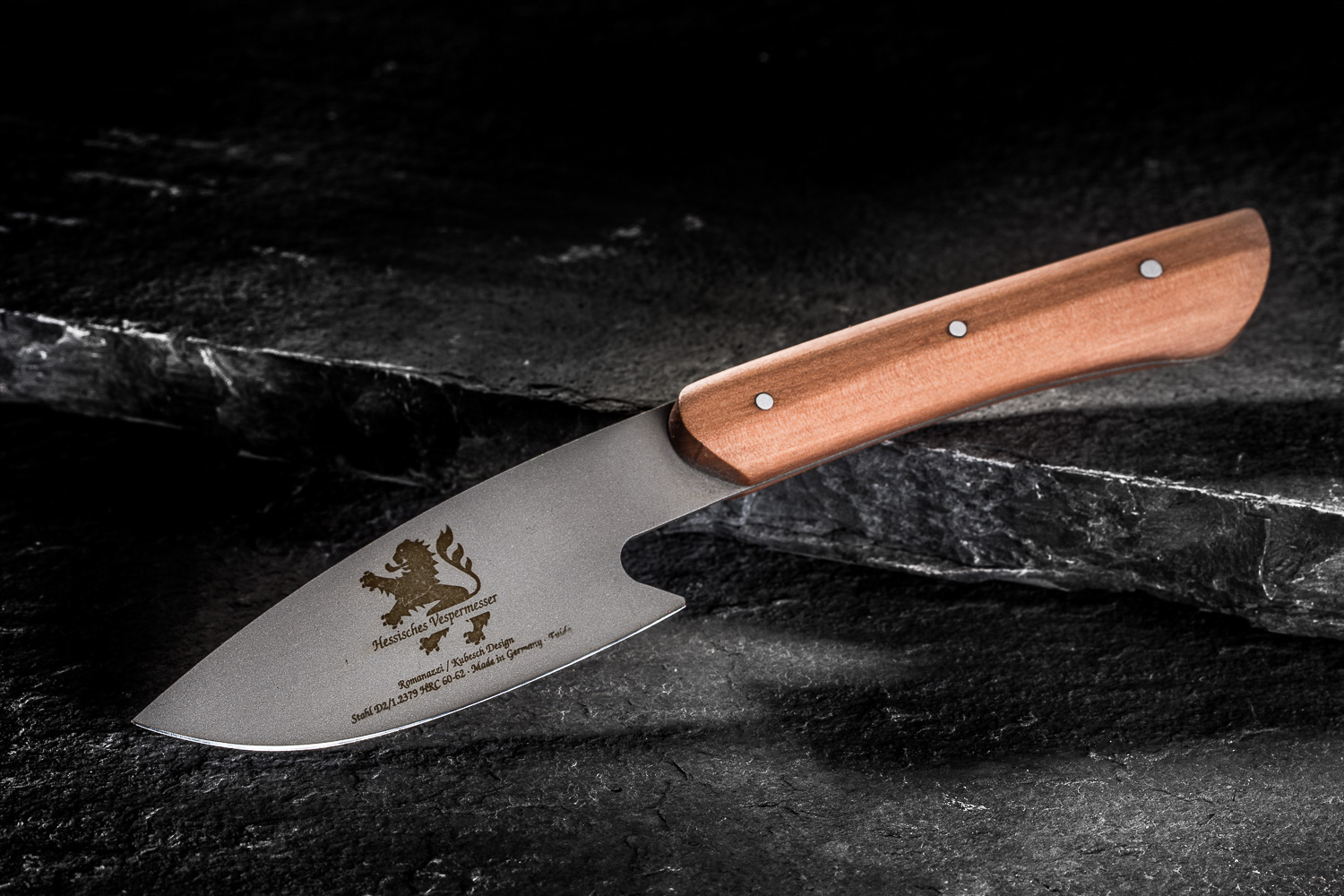Aus hochwertigem, rostträgen D2-Stahl fertigt Jens Kubesch Messer, deren Klingen anschliessend gehärtet und glasperlengestrahlt werden. Für die Messergriffe kommen verschiedene Hölzer oder Hornmaterialien zum Einsatz, individuell und ergonomisch sinnvoll gestaltet. Solch ein hochwertiges Qualitätsmesser hat eine nahezu unbeschränkte Lebensdauer wenn es von seinem Besitzer nach allen Regeln der Kunst, in die er von Jens Kubesch eingeführt wird, gepflegt wird. Der Meister Jens Kubesch bildet im Beruf des Schneidwerkzeugemechanikers aus. Besonders beliebt sind seine mehrtägigen Messerbau-Seminare für interessierte Laien. Der Einblick in das Handwerk des Messerbaus schärft das Verständnis für die hohe Professionalität und das handwerkliche Knowhow, denn in jedem echten, einzigartigen Qualitätsmesser steckt ein Höchstmaß an Perfektion.