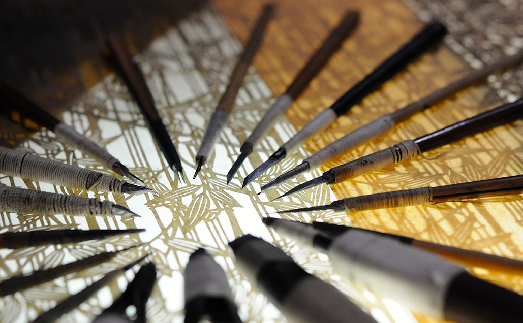 In 1967, Takeshi Nishimura studied under Tomokichi Nishimura to master all the skills of Yuzen engraving, and started Yuzen engraving business.