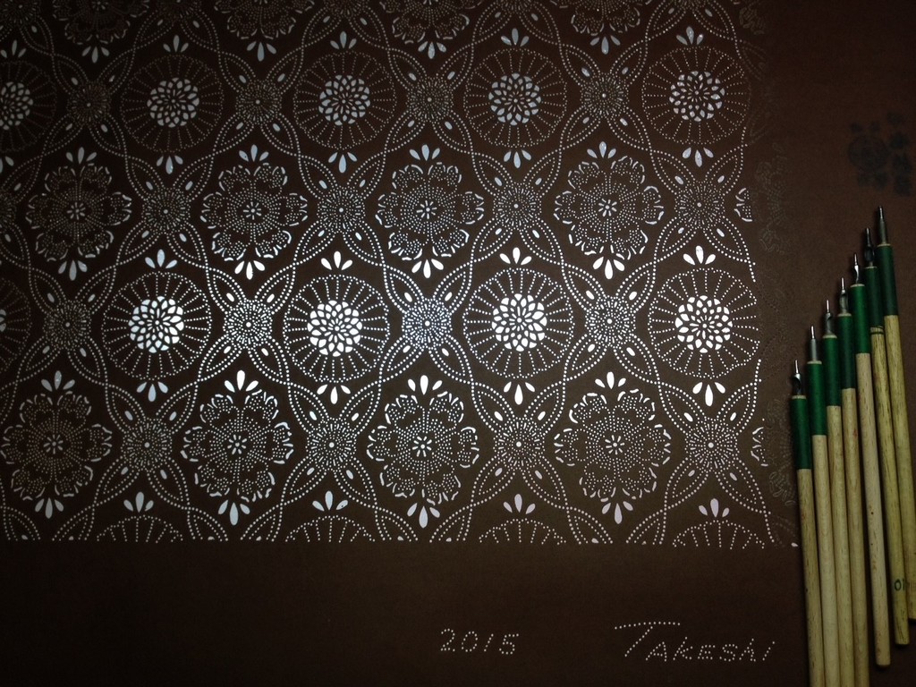 By using the skills of Yuzen Chokoku, Nishimura creates arts of Japanese traditional patterns, landscapes patterns, or portrays which inspires a feeling of “a warm heart”, ”comfort”, or “a hear of Japanese”. Now he is working on new style of production and sales to bring his works into our everyday life, and he wishes to create a special paper pattern, which somehow touches our hearts.