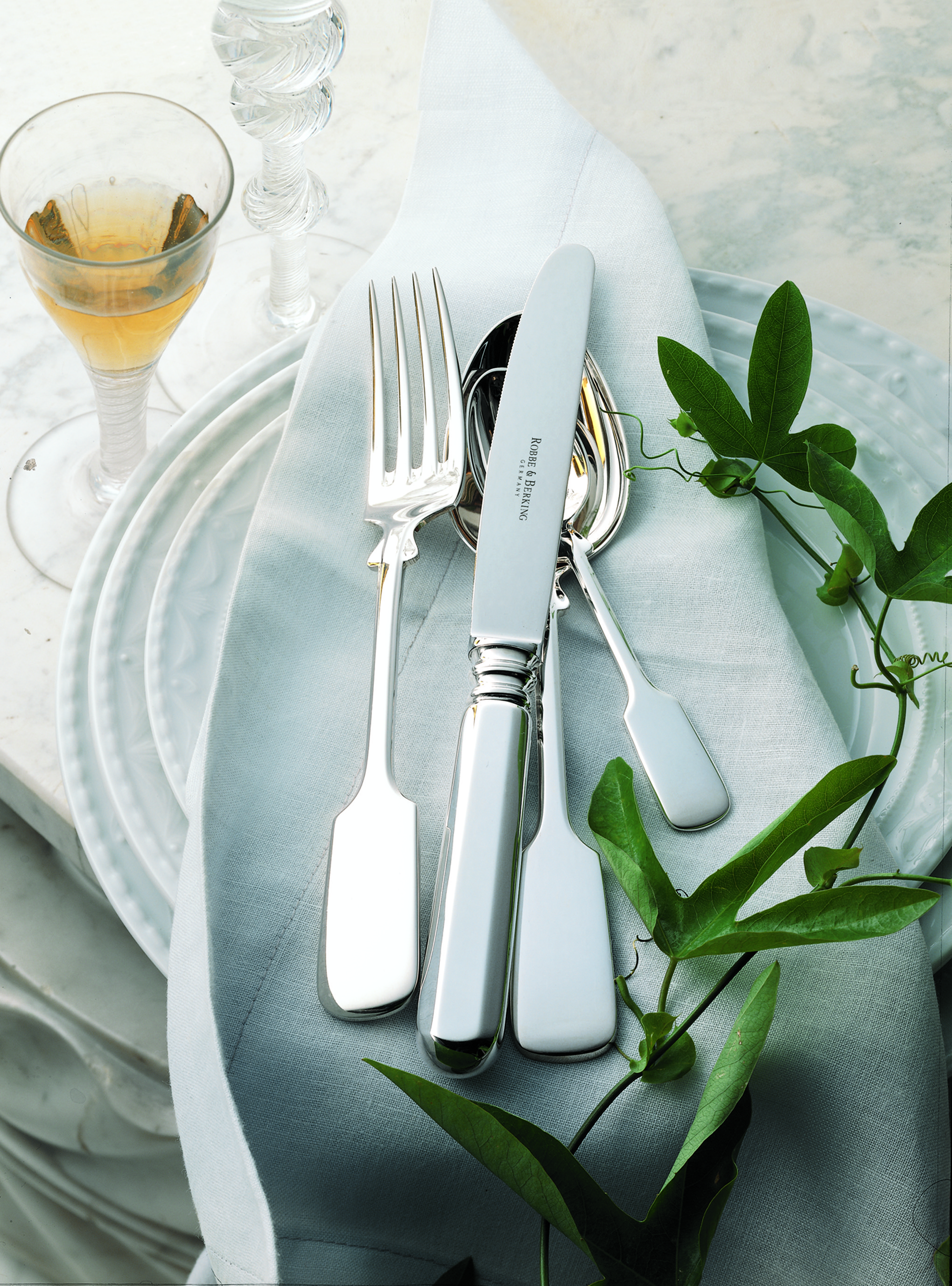Robbe & Berking ist eine der immer seltener werdenden reinen Manufakturen. In über 50 Handarbeitsschritten entstehen aus Sterling silbernen Blechen große und kleine Meisterwerke, die zu Familienstücken werden. Oft für Generationen. „ Andere mögen billiger, aber niemand darf besser sein als wir!“ galt schon vor fast 150 Jahren als Maßstab für die ersten angestellten Silberschmiedemeister des Hauses. Und so wird bis heute nach alter Väter Sitte in den Werkstätten gelötet, gefeilt, damasziert und punziert, poliert, graviert und jede Arbeit immer wieder kontrolliert. Nur was in der strengen Schlusskontrolle freigegeben wird, geht schließlich in den Verkauf. Diese unübertroffene Qualität und die zeitlosen Formen der Entwürfe ermöglichen es der Manufaktur, für jedes silberne und jedes versilberte Besteckteil eine Nachkaufgarantie zu gewähren.
