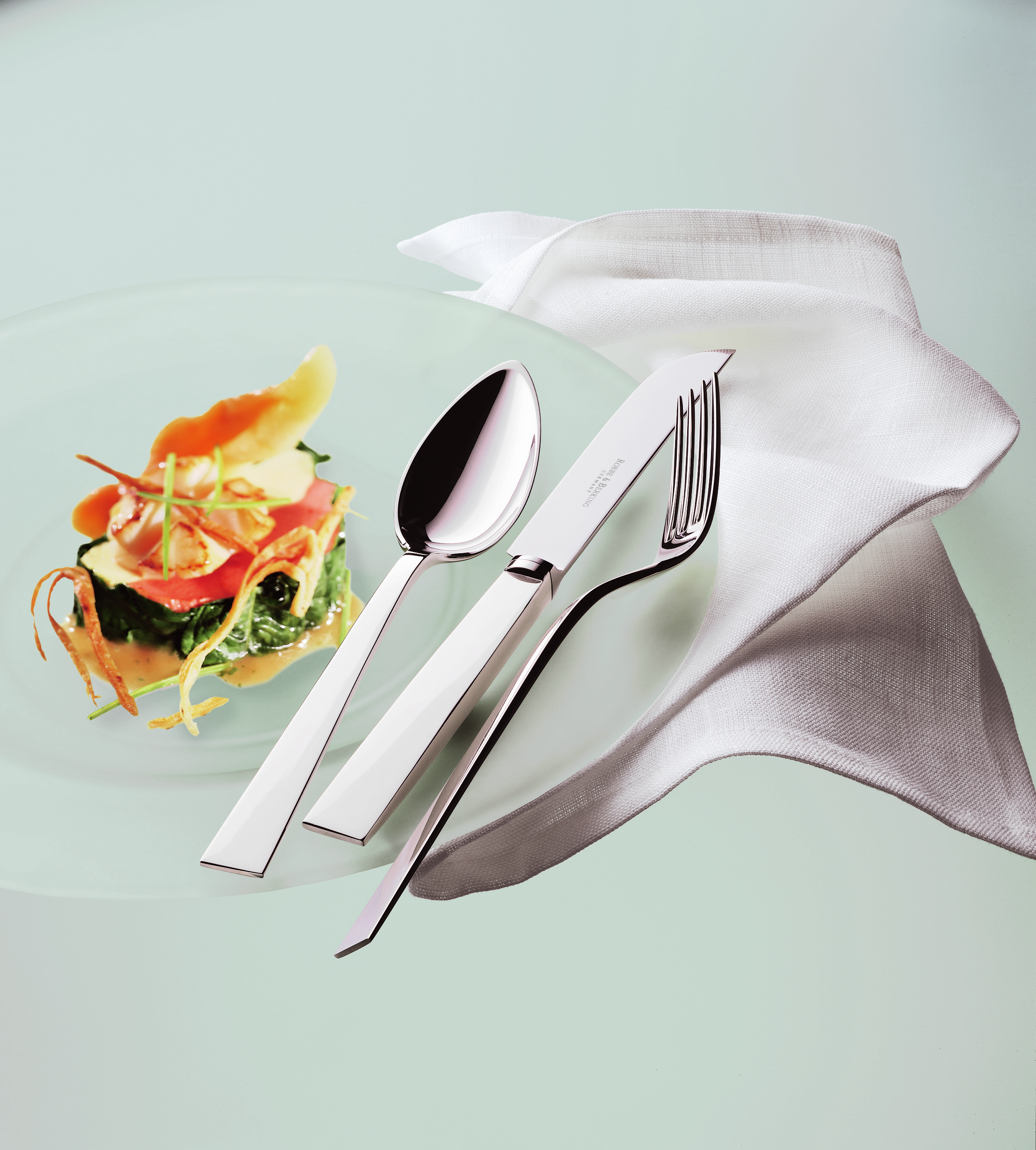 Ein Entwurf von genialer Einfachheit. Hochkonzentrierte Ästhetik voll sinnlicher Ausstrahlungskraft. Die Kunst, mit weniger mehr zu vermitteln, hat durch “Riva“ einen neuen Höhepunkt erreicht. Aus der Wechselbeziehung unterschiedlicher Materialdimensionen resultiert eine Körperhaftigkeit des Silbers, wie es sie so elementar bei einem Besteck bisher nicht gab. Ein modernes Meisterwerk der Silberschmiedekunst von unübertroffener handwerklicher Perfektion.