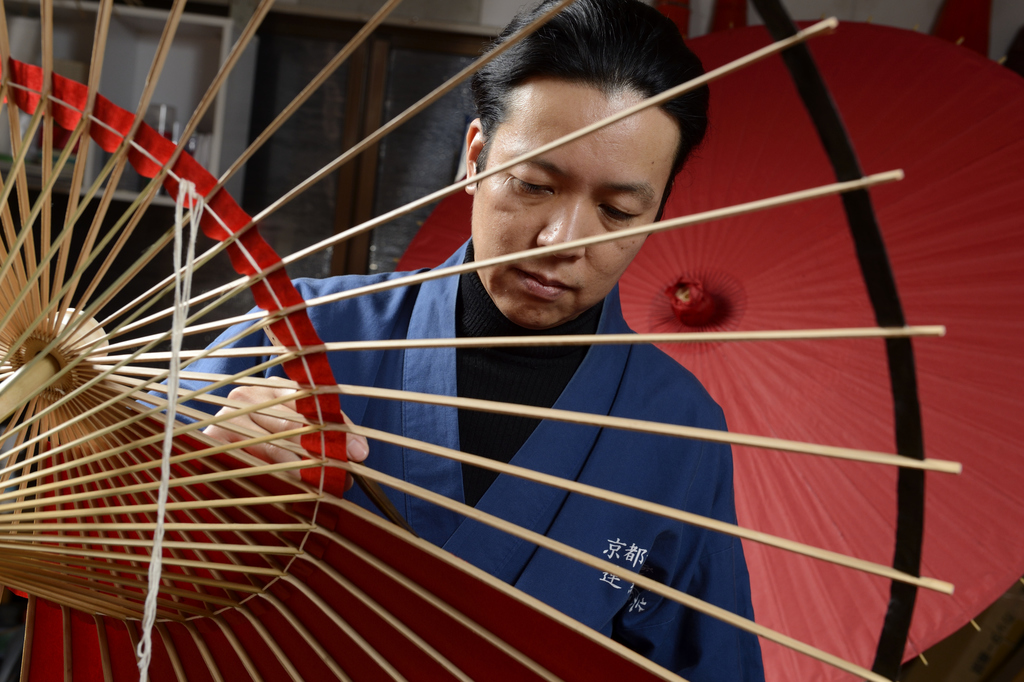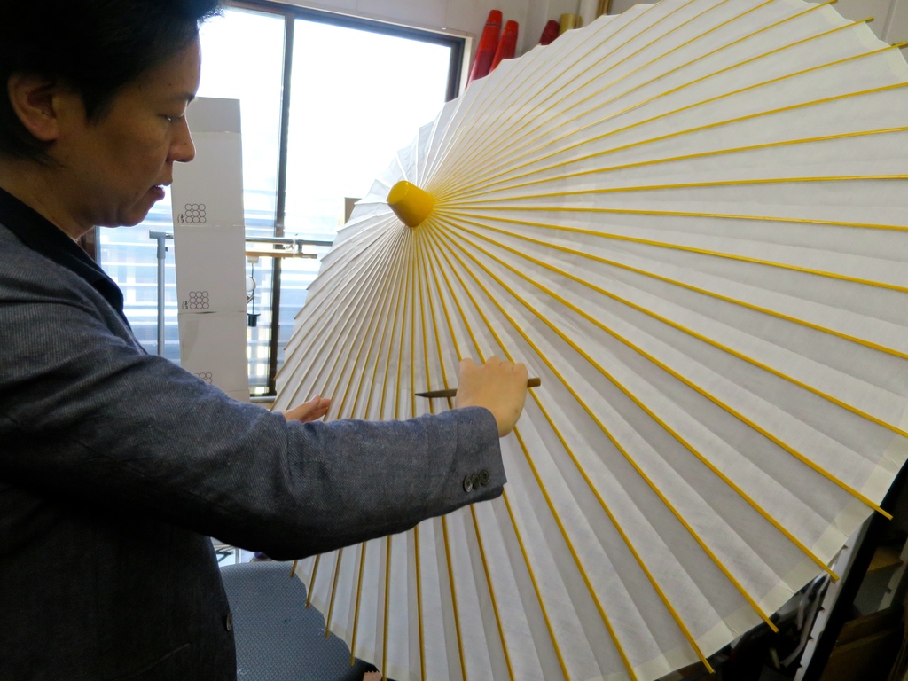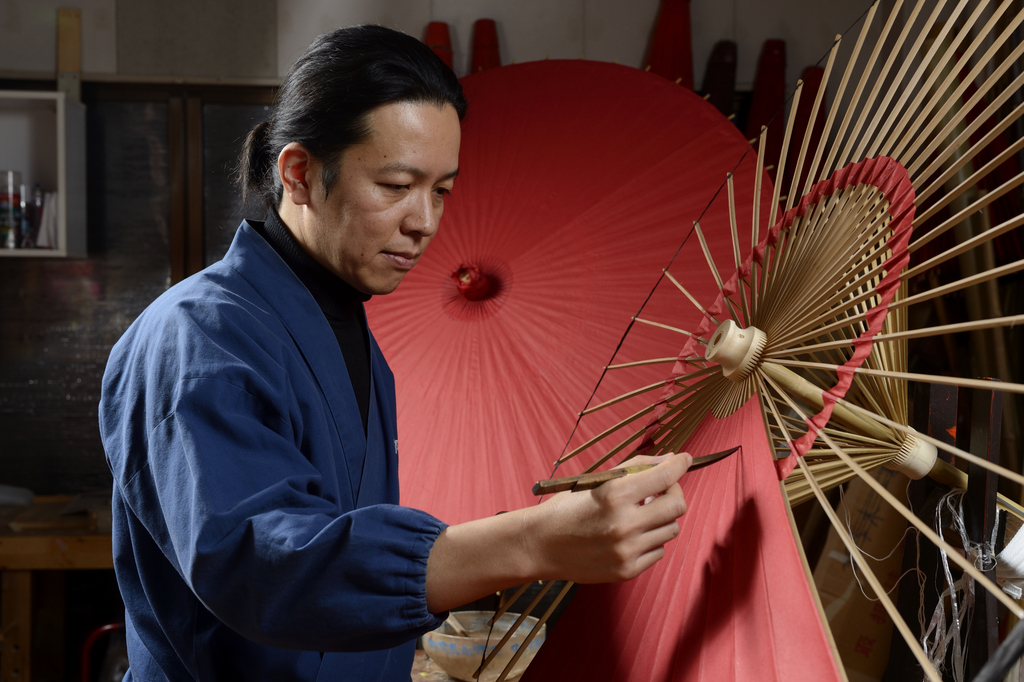 Seit der Gründung in der späten Edo-Zeit (1600-1868) ist Wagasa Hiyoshiya auf die Herstellung feinster, klassischer, japanischer Schirme spezialisiert und mittlerweile der einzige Betrieb in der früheren Kaiserstadt Kyoto, der diese Tradition noch heute fortführt. Kotaro Nishibori, der den Familienbetrieb in fünfter Generation leitet, gelingt es aber auch mit innovativen Produkten, international für Aufsehen zu sorgen.