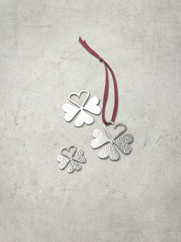 In vier Größen handgefertigt, glatt oder martelé, trägt man diesen gediegenen Glücksbringer an Handgelenk oder Hals