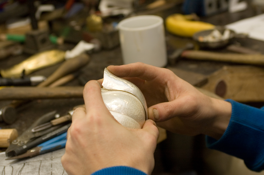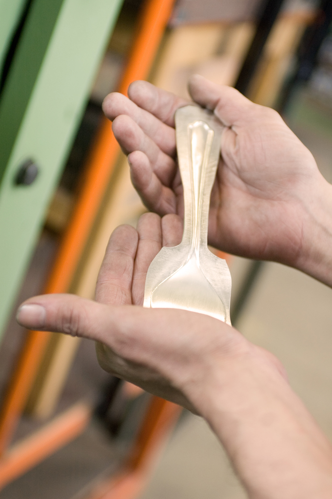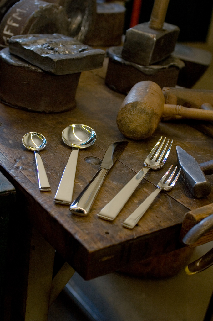 In vielfältigen Arbeitsgängen – von der Aufbereitung des Rohmaterials bis zur Feinpolitur – entsteht in der Wiener Silber Manufactur exquisites Besteck mit dem außergewöhnlich hohen Silbergehalt von 94%, der es anlaufbeständiger und spülmaschinengeeignet macht.