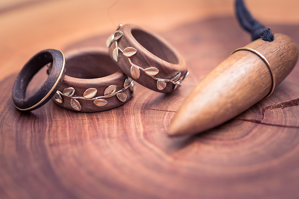 Ganz im Sinne des Nachhaltigkeits-Gedankens werden dabei kleinere und besondere Holzteile nicht weggeworfen, sondern als hochwertiges Rohmaterial für die Produktion eines feinen Schmuck- und Geschenkwarensortiments verwendet.