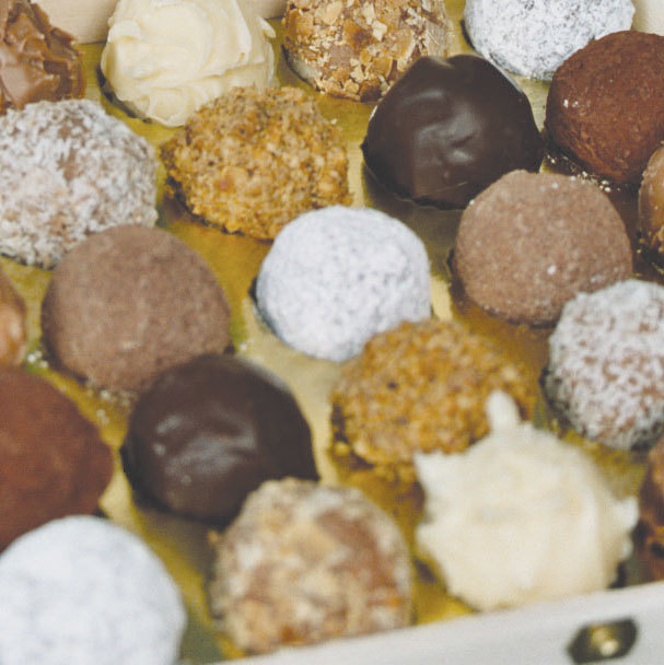 Die Produktpalette erstreckt sich über das Leitprodukt der Schokolade-Trüffel in verschiedenen Variationen, bis hin zur klassischen Mehlspeise aus traditionellen Rezepturen, in Verbindung mit Kaffee- und Tee-Spezialitäten.