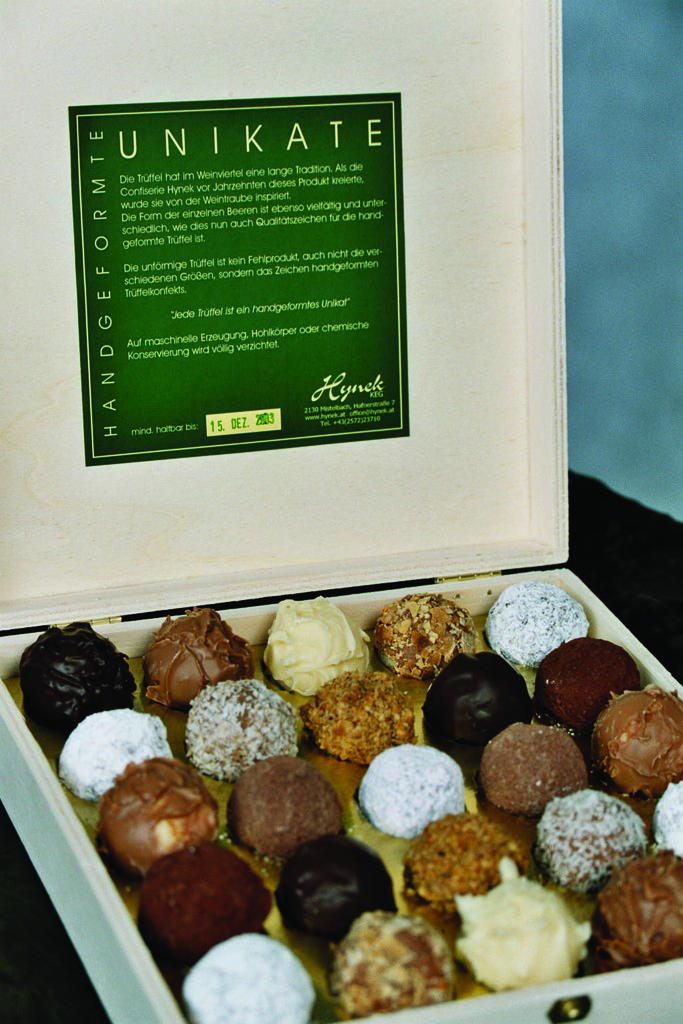 Mit der Veltliner-Trüffel schaffte die Confiserie Hynek unter dem Markennamen „Der Wein zum Naschen" eine starke Verbindung zum Weinviertel und den Menschen, die dieses Land prägen.