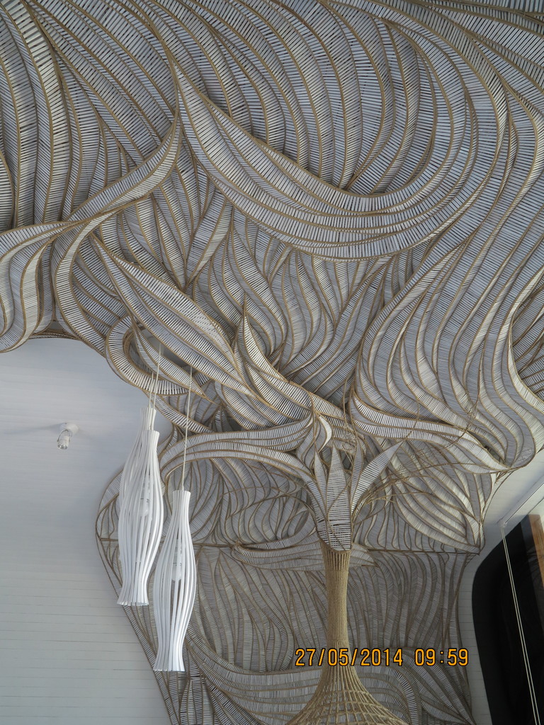 My inspiration comes from the environment which I have changed into works of art with the use of natural materials, such as bamboos and hemp ropes. The techniques have been adopted from kite-making that I had learned from my grandfather who is an expert on Chula kite. I have added functions into it so that my works are suitable for decorating homes and buildings today.
