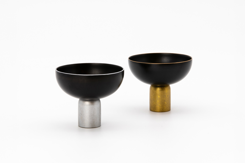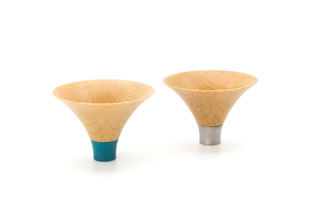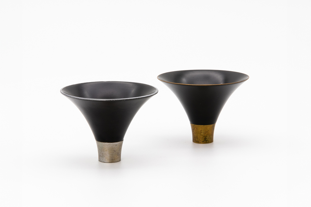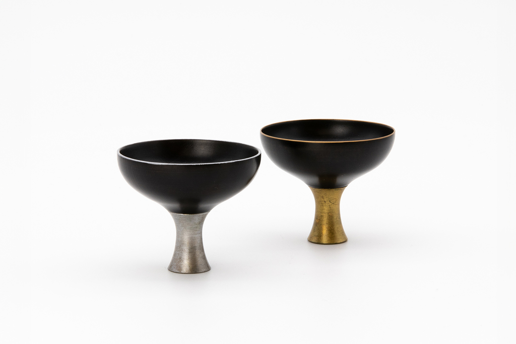 Drawing on their deep understanding of local production capabilities and metal characteristics, brothers Motomasa and Susumu have led projects where Susumu himself designs the new products. One of his creation, the 'Guinomi Sake Cup.'