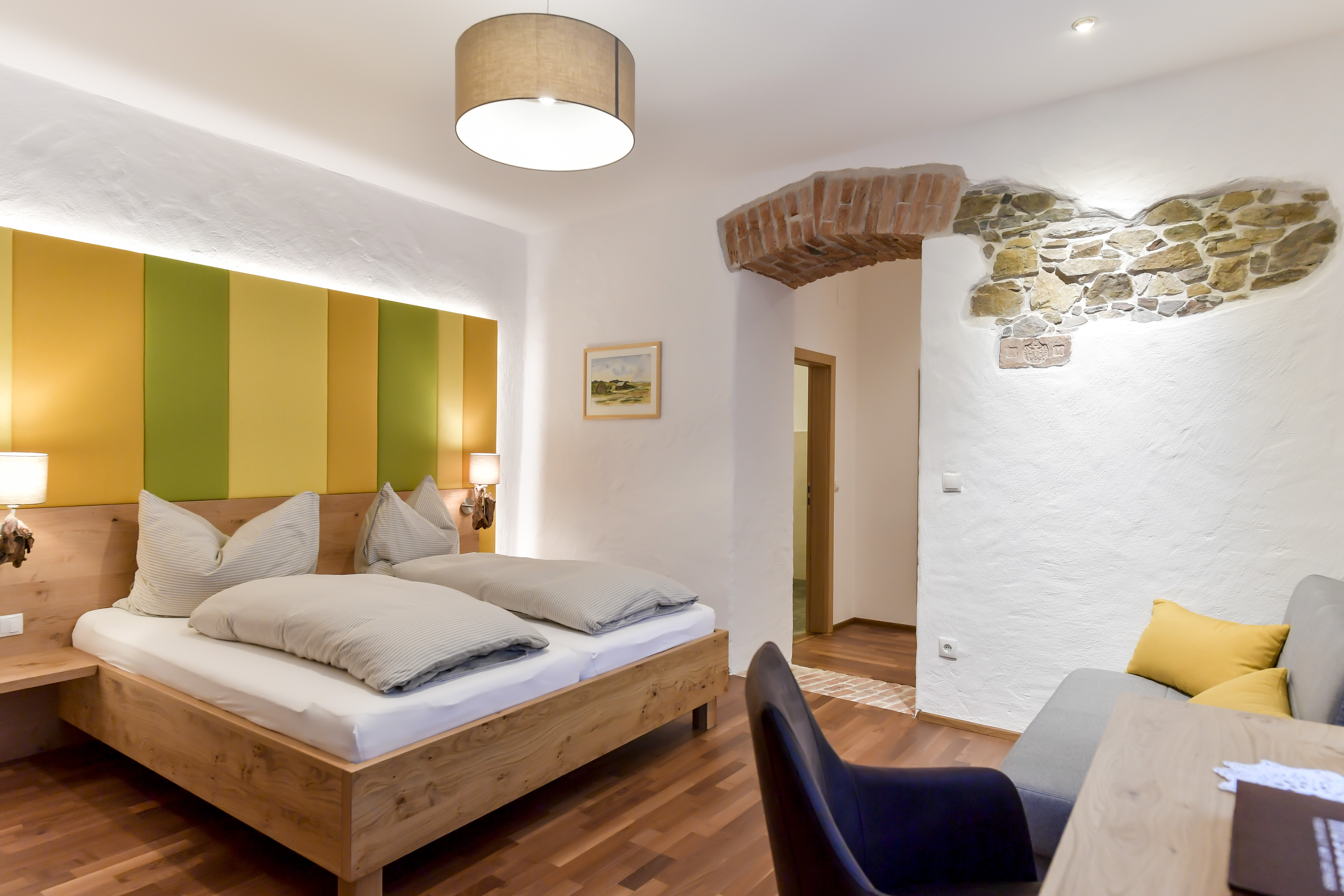 Die vier zertifizierten Genießerzimmer wurden mit viel Liebe zum Detail und inspiriert von regionalen Materialien eingerichtet und so dürfen sich unsere Gäste ganz wie zu Hause fühlen. Die Namen verraten schon die bestimmende Farbe der Einrichtung – Mohnblume, Leinblüte, Hanfzeit und Kornfeld. Alle vier verfügen über eine hochwertige Einrichtung aus regionalen Materialien mit Möbeln aus Vollholz, WLAN, einen Fernseher mit Kabelfernsehen sowie ein geschmackvoll eingerichtetes Bad. Untergebracht sind die Zimmer im 1. Stock unseres Hauses, dessen Grundstein vor mehr 300 Jahren gelegt wurde.