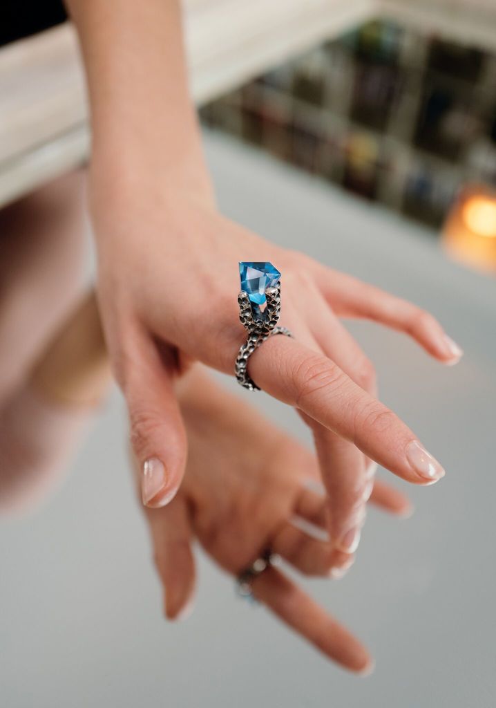 Es ist nicht nur die Optik, die Obizzi einzigartig macht, es ist auch das Taktile: die samtene Oberfläche von Gold und die Haptik ungewöhnlich facettierter Edelsteine. Dieser Herangehensweise liegt auch die Formensprache des Labels zugrunde, bei der Opulenz und Eleganz keine Gegensätze sind. Jedes Schmuckstück ist ein Unikat, handgefertigt von der Designerin selbst in ihrem Studio – dem namensgebenden Palais Obizzi am Schulhof im 1. Bezirk in Wien.