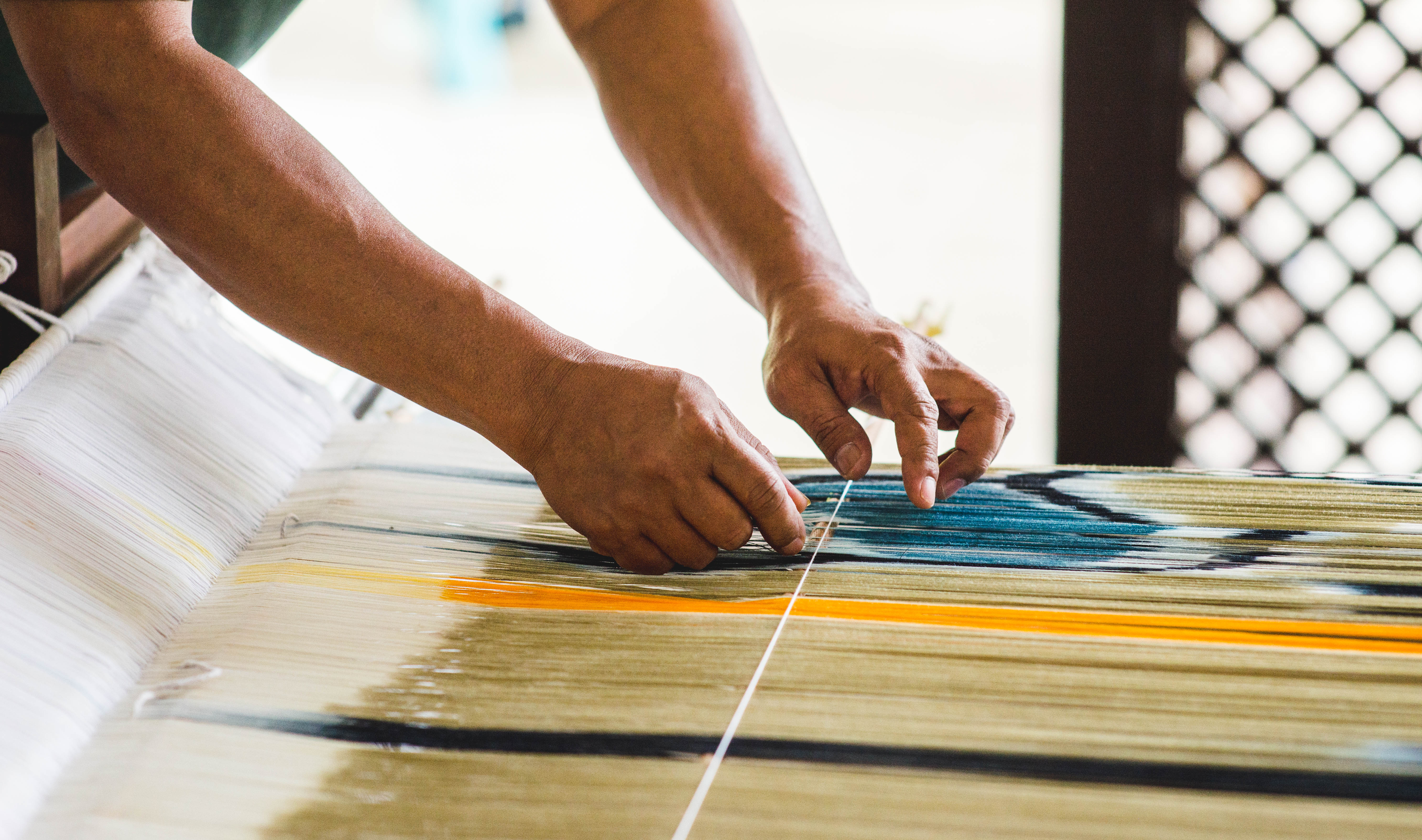 Pink Jambu is also known as the primary retailer of the exquisite Royal Pahang Weave, a thousand-year old heritage textile tradition that hails from the Malaysian sultanate of Pahang. This fine craft has experienced a revitalisation that can be credited to Her Majesty Queen Azizah of Pahang, Malaysia. The fabric has a rich history and is considered formal wear in Malaysian high society. The House still employs the traditional techniques of processing, dyeing and weaving yarns that can take up to two months to produce a single sheet of fabric.