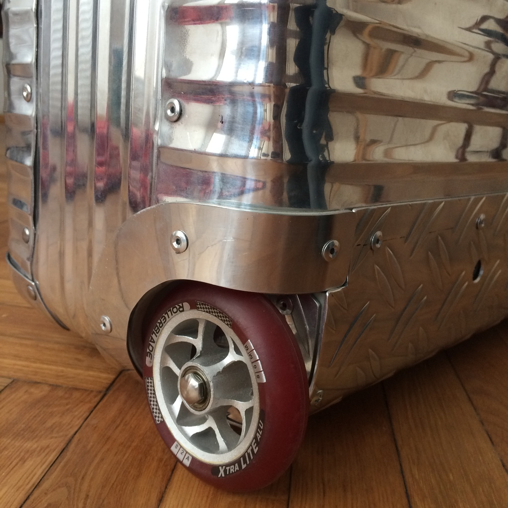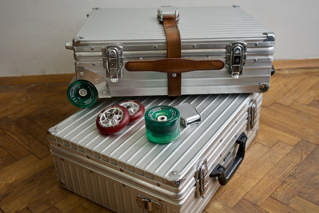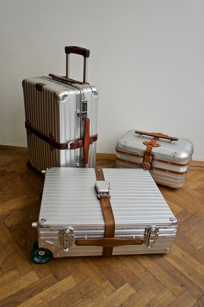 Ein immer wiederkehrendes Projekt ist das Tuning von Reisegepäck. Bernd Schreiner liebt die Patina der Rimowa - Aluminiumtrolleys, er war jedoch stets unzufrieden mit der Qualität der Anbauteile und des Innenlebens. Er fertigte Griffe und Gurte aus Sattelleder, ersetzte die originalen Rollen durch solche von Inlinesskatern oder Longboards, substituierte Sichtteile aus Kunststoff durch Aluminium, Carbon oder Holz und ersetzte das unschöne Innenfutter mit einem Lining aus wohlriechendem Ziegenleder. Die ersten Stücke baute er für den Eigenbedarf und es gab kaum eine Reise, bei der er nicht auf seine Gepäckstücke angesprochen wurde. Seit der Gründung von UNICUM WIEN ist das Veredeln von Alukoffern ein zentrales Thema und wird laufend weiterentwickelt. Auf Kundenwunsch werden Gepäckstücke von Rimowa, Zero Halliburton oder Eisele personalisiert und aufgewertet.