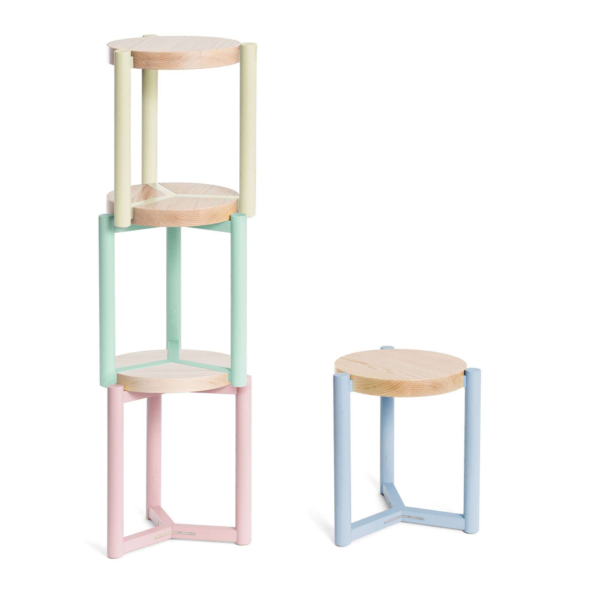 Wohnräume werden immer kleiner. Demnach verlangt die minimale Wohnfläche nach ausgeklügelten Möbeln, die sich situationsbezogen anpassen lassen. So lässt sich OYY, wenn mehrere Sitzmöglichkeiten benötigt werden, als Hocker verwenden und andernfalls platzsparend zu einem nützlichen Regal stapeln.