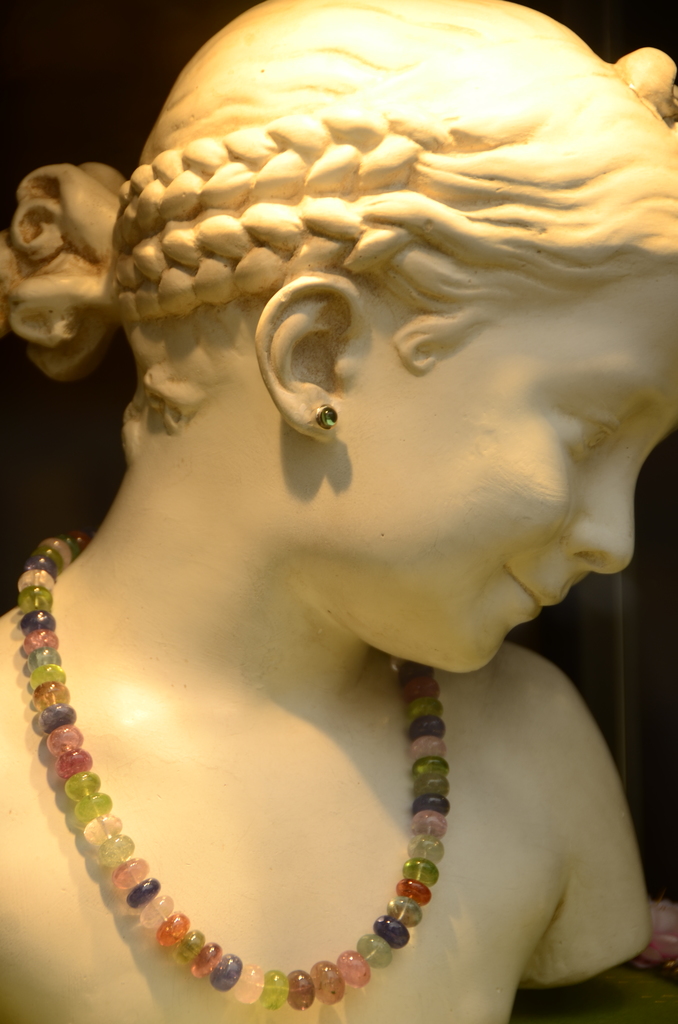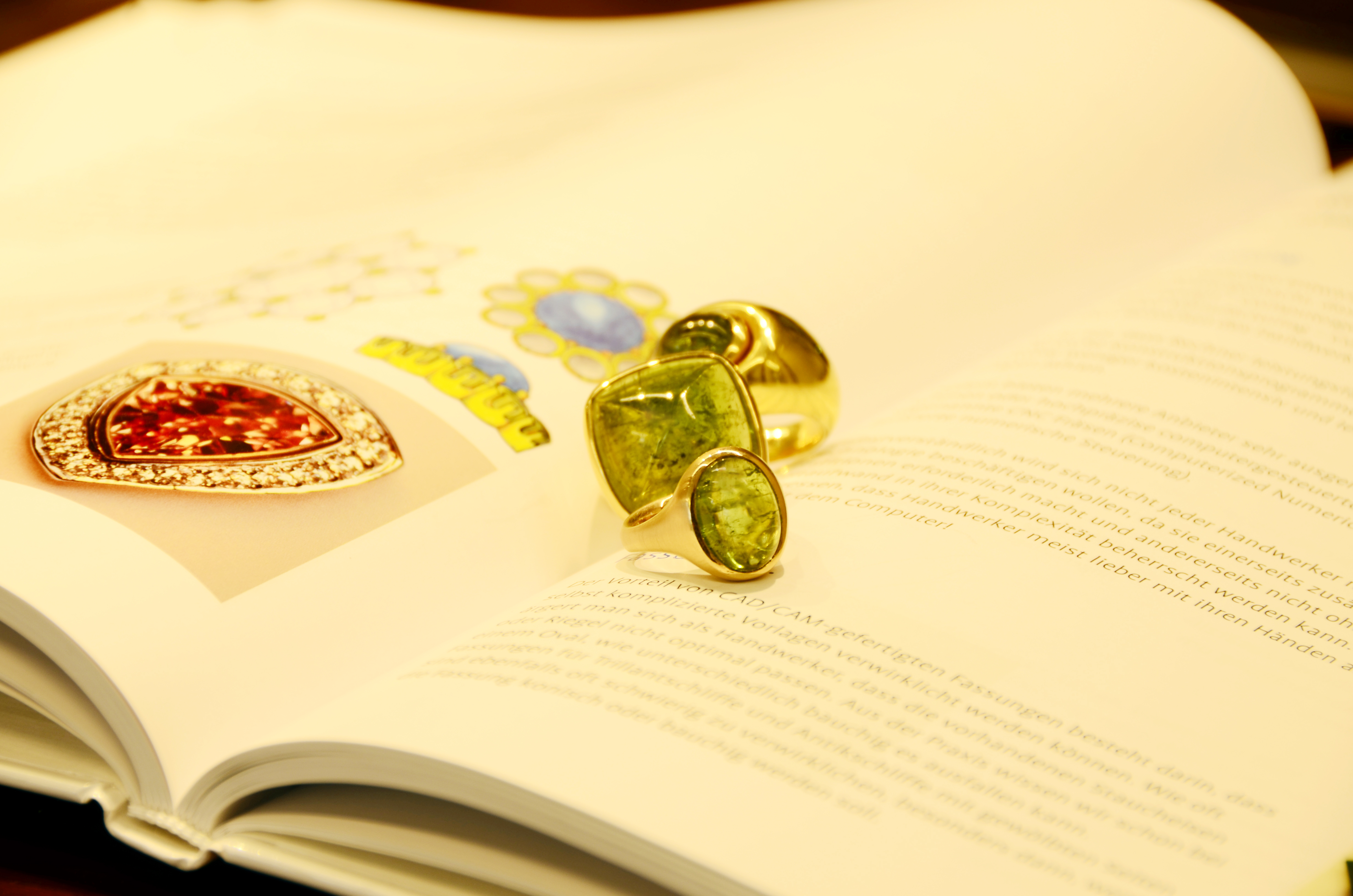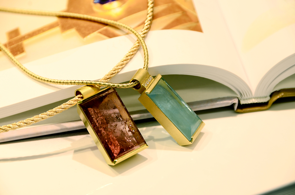 Individuelle Schmuckstücke entstehen in einem längeren Prozess des Austausches und der Abstimmung mit den Kunden. Eine breite Palette farbiger Edelsteine in unterschiedlichen Schliffen, Formen und Größen stehen zur Auswahl, dazu Vorschläge und Modelle zu deren Verarbeitung. Inspirationen liefert auch die kleine aber feine AUREUS Kollektion mit hinreissenden Beispielen handgefertigter Preziosen. Verarbeitet wird 750er Gold aus eigenem Recycling, Schmuck den Kunden umarbeiten oder neu gestalten lassen. Für die Entscheidung zu klassischen Schmuckformen spricht ihre zeitlose Eleganz, deren gestalterische wie handwerklicher Perfektion über Jahrzehnte Bestand hat - in einem wohl proportionierte Schmuckstück von angemessenem Gewicht, dessen makellose Steine ihre optimale Entsprechung in einer präzisen Fassung finden.