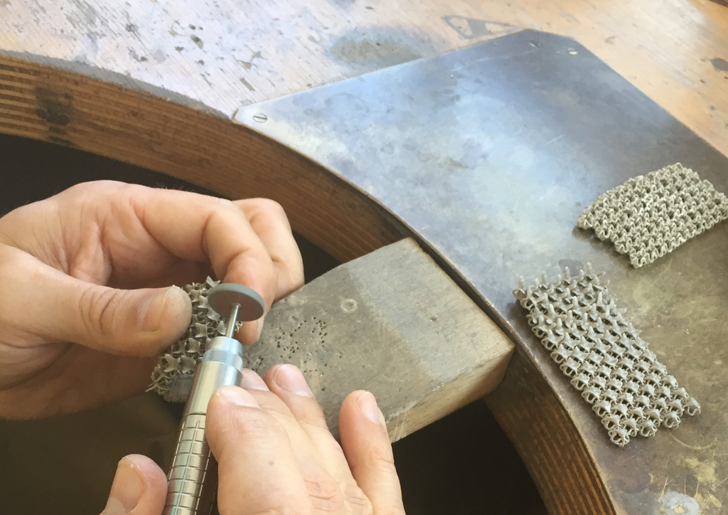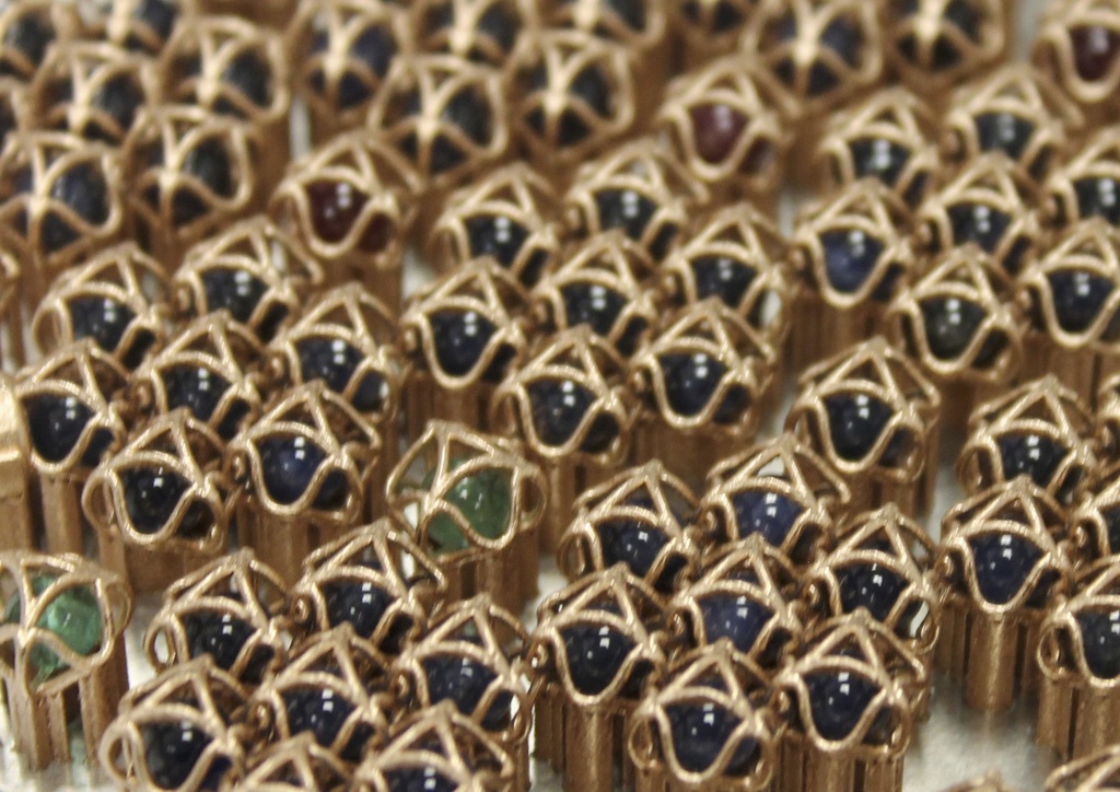 The new technology is used to create designs that have never been feasible before and offer a new dimension of individualisation: each piece is first programmed in 3D and then melted together layer by layer from gold powder. This means that all objects can be made to customer specifications.