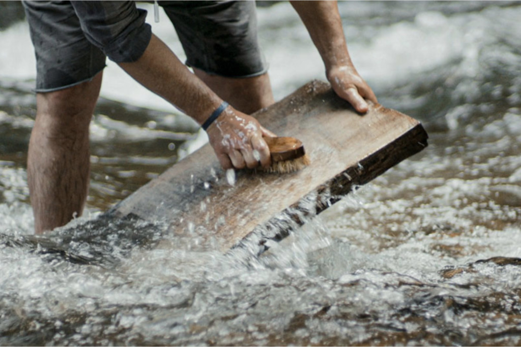 Mittlerweile köhlen Sie die Oberflächen der Tische nicht nur, Sie waschen sie auch aus. Ist Wasser weniger zerstörerisch als Feuer?