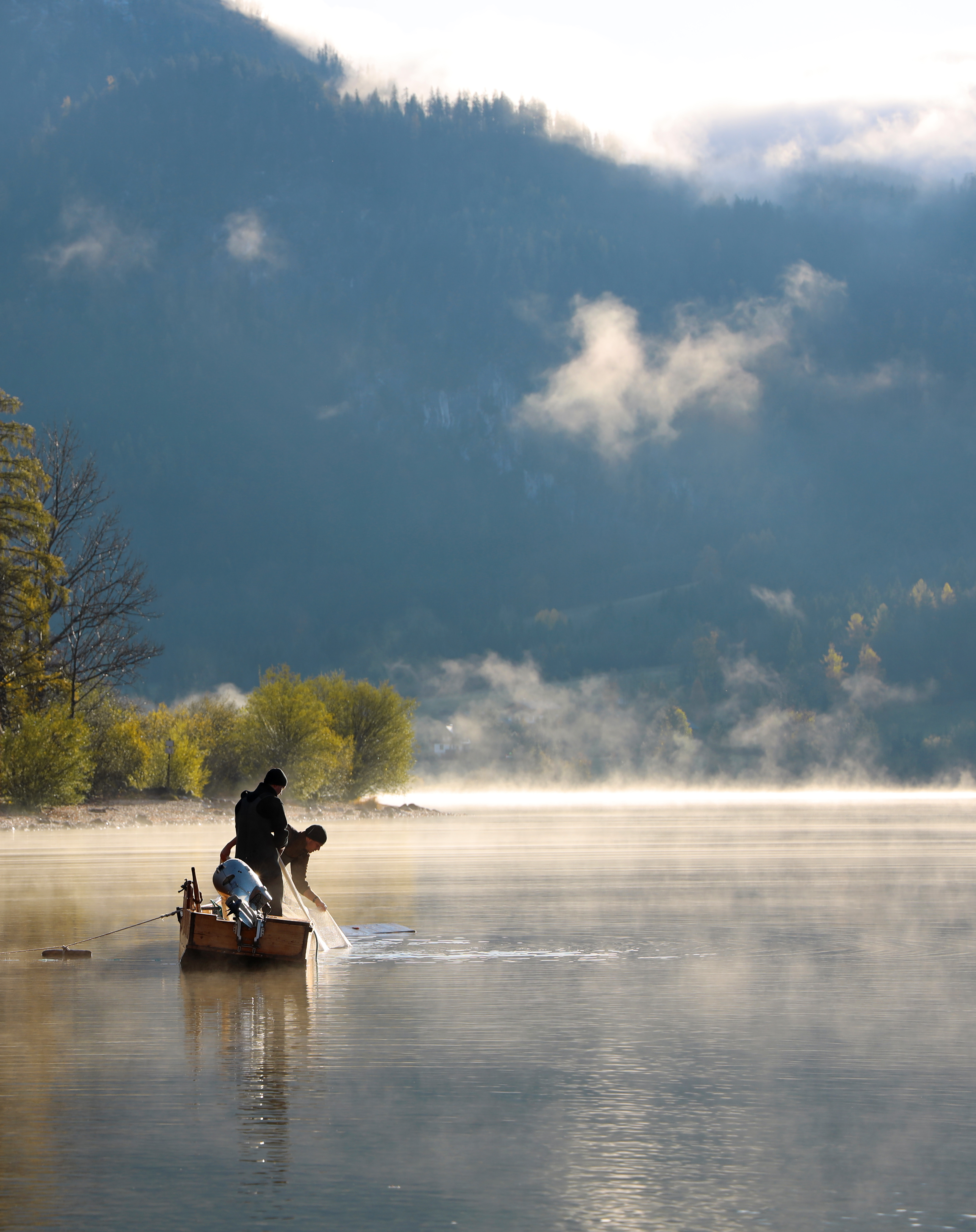 Alles fließt. Klares Gebirgswasser speist den See, altes Wissen fließt in die Arbeit der Fischmeister. Ja, auch Fische müssen meisterlich behandelt werden!