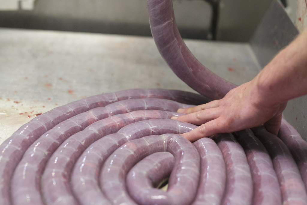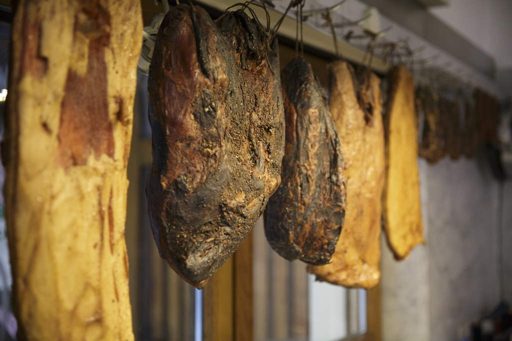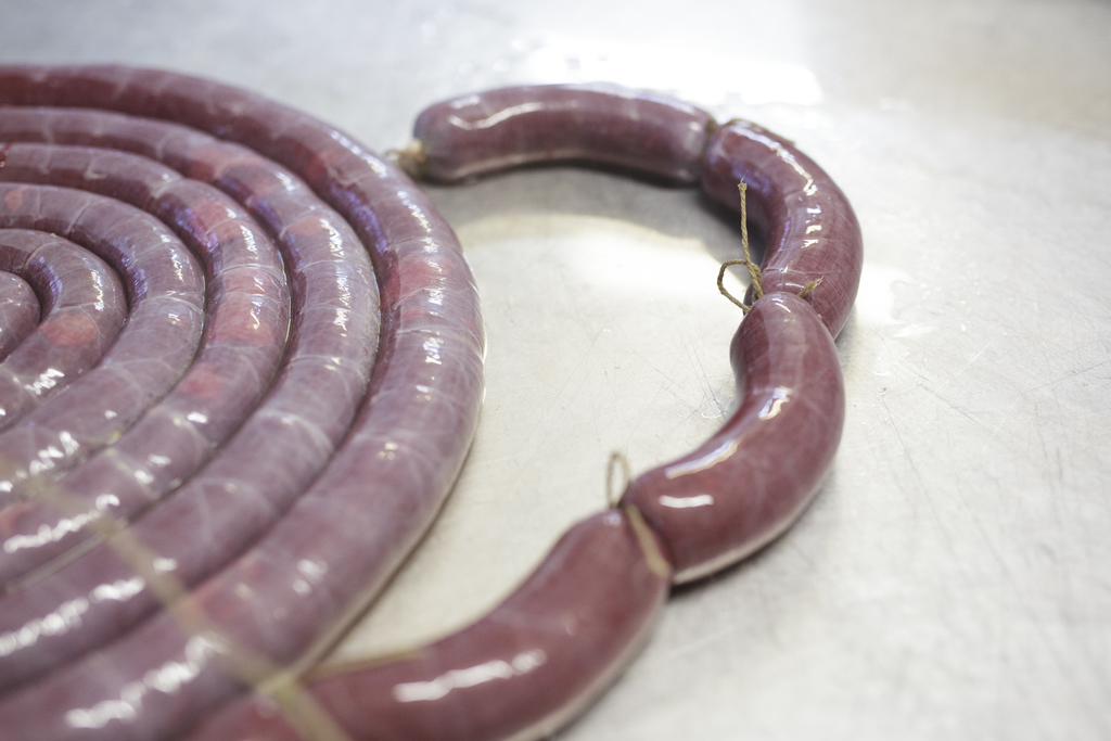 Das Sortiment an Blutwürsten umfasst mehr als 60 Alternativen, von A wie Ananasblunz’n bis Z wie Zwetschkenblunz’n – und dazwischen Leckerbissen wie Chili-, Kokos- oder Schokoladenblutwurst, die mit saisonalen Produkten abwechseln. Das Sortiment einer klassischen Fleischerei mit handgemachten Schinken und Würsten rundet das Angebot ab.