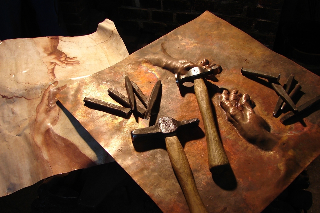 Nach wie vor bilden Skizzenblock sowie Feuer und Amboss den kreativen Mittelpunkt unserer Arbeit zum Erhalt und zur Neuentstehung von Werten.
