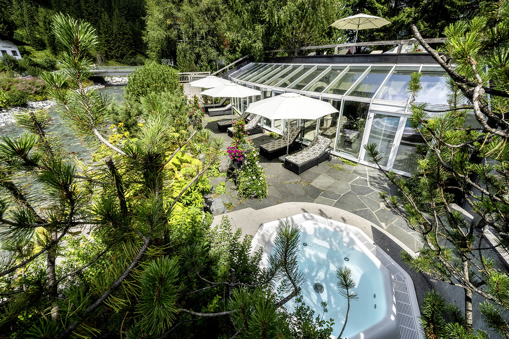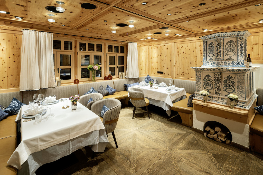 - Fondue-Stube aus Zirbenholz, Sonnen-Terrasse, Tagesbar mit Kamin-Lounge