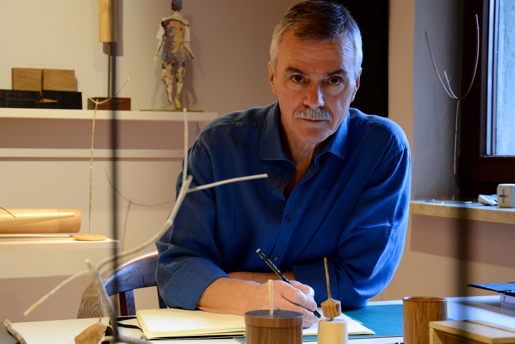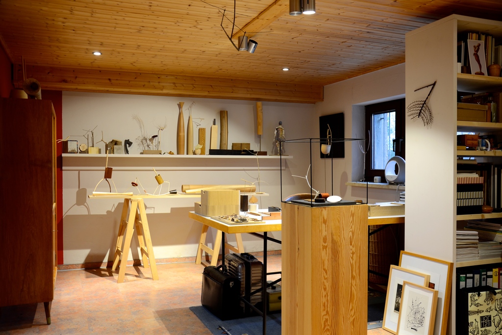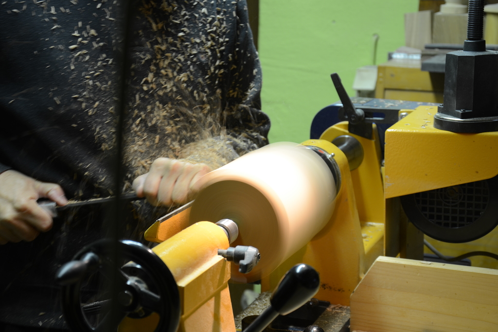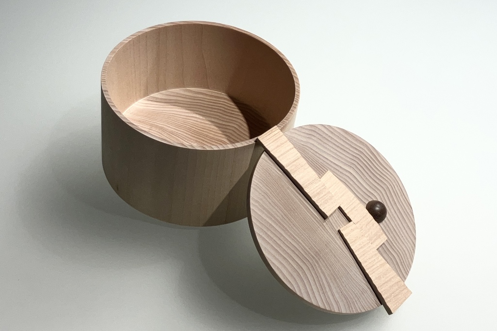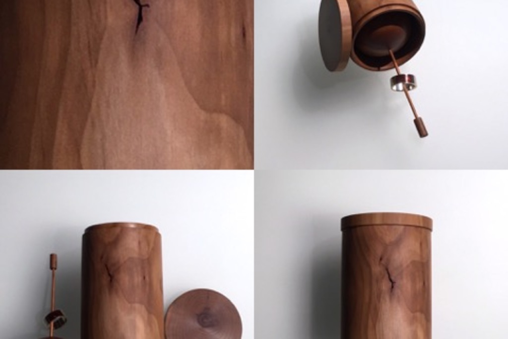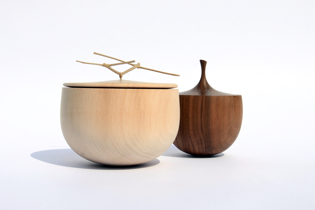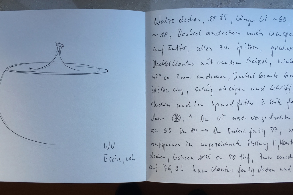 Horst Kontaks Thema ist die Holzdose. Holzgefäße, aber auch andere Objekte, bilden sich in seinen Gedanken ab, er bringt sie zu Papier, sucht diese eine Linie, folgt einer Idee – und dann geht es los in der Werkstatt. Nun kommen Bandsäge, Drechselbank und gutes Werkzeug zum Einsatz. Langholz in schlichter und einfacher Form, einheimische Hölzer wie Robinie, Eiche, Platane, Linde, Ahorn oder Walnuss – selten nur tropisches Holz – kommen auf seine Drechselbank. Der Sitz beider Teile zueinander, Sommer wie Winter, muss rund um die Uhr zueinander passen, schließen nur dem Wuchs nach. Geräusche beim Öffnen verleiten ihn, den Deckel noch einmal zu bewegen, einfach und schön.
