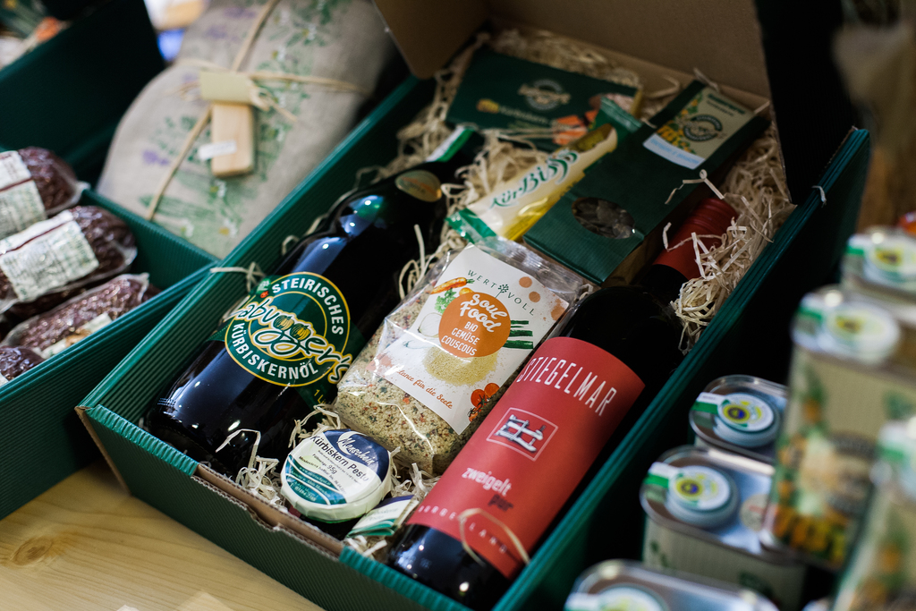 Mittels hofeigener Kürbiskernölpresse werden Kürbiskerne sorgfältig zu unterschiedlichen regionalen Köstlichkeiten verarbeitet: