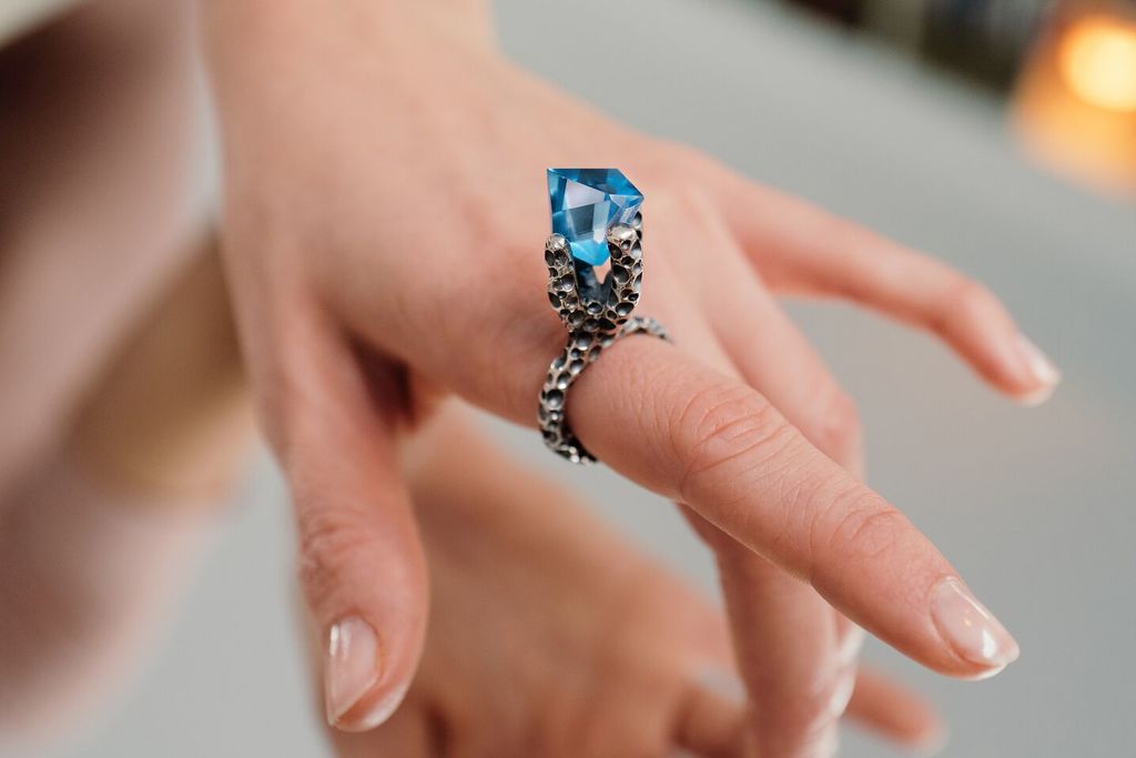 Es ist nicht nur die Optik, die Obizzi einzigartig macht, es ist auch das Taktile: die samtene Oberfläche von Gold und die Haptik ungewöhnlich facettierter Edelsteine. Dieser Herangehensweise liegt auch die Formensprache des Labels zugrunde, bei der Opulenz und Eleganz keine Gegensätze sind. Jedes Schmuckstück ist ein Unikat, handgefertigt von der Designerin selbst in ihrem Studio – dem namensgebenden Palais Obizzi am Schulhof im 1. Bezirk in Wien.
