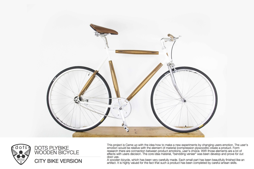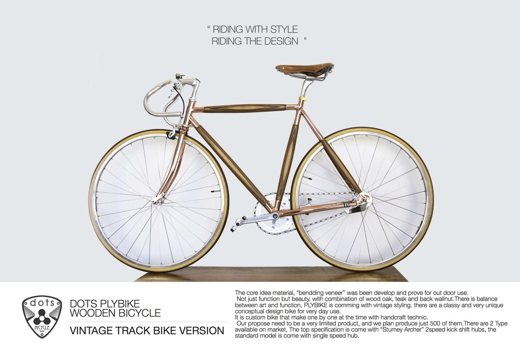 The core idea material, “bendding veneer” was been develop and prove for out door use.Not just function but beauty, with combination of wood oak, teak and back wallnut.There is balance between art and function, PLYBIKE is coming with vintage styling. there are a classy and very unique conceptual design bike for very day use.