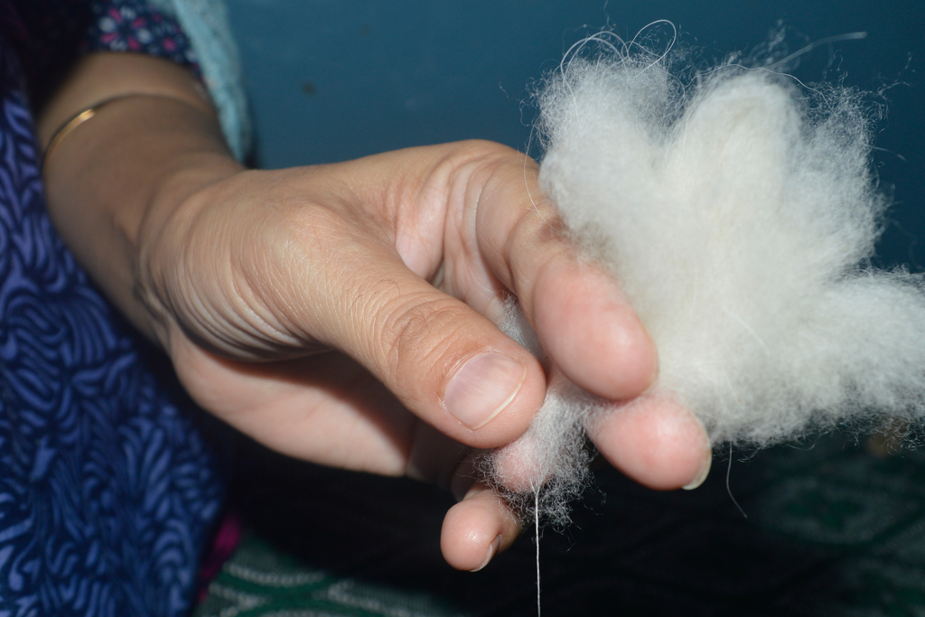 „Pashmina“ heißt übersetzt „zartes Gold“ und ist die Bezeichnung der feinen Unterwolle der Changpa-Ziegen, die auf über 4.500 Meter im Himalaya leben. Die flauschige Rohwolle wird in der Manufaktur der beiden liebevoll und nach jahrhundertealten Handwerkstradition zu edlen Schals gewebt.