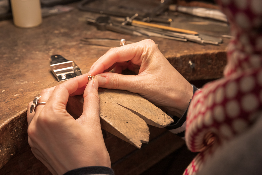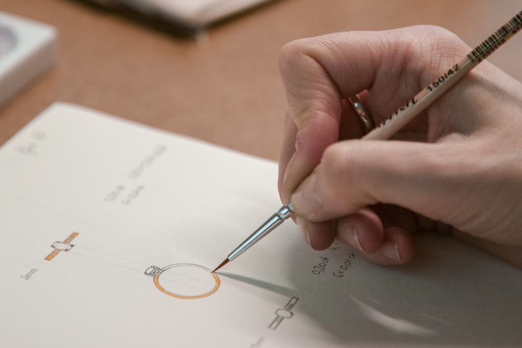 Die Eheringe werden aus recyceltem Gold und Platin hergestellt, in allen beliebigen Goldlegierungen. Die Diamanten und Edelsteine werden ausschließlich bei ausgewählten und vertrauten Partnern angekauft. Die Ringe können mit Namen, Datum oder Ihrem Lieblingsspruch graviert werden. Neben den Trauringen werden auch Hochzeitsschmuck – Colliers, Ohrringe, Armbänder – handgefertigt, um dem Outfit der Braut den letzten Schliff zu geben.