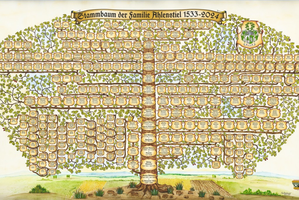 Angefertigt werden können sowohl Tafeln mit kleineren Familienstrukturen, als auch großformatige Gemälde mit vielen Ahnenreihen.