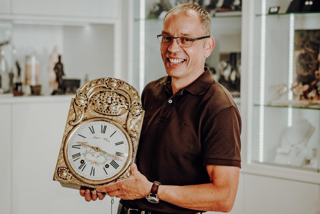 Taschenuhren, Armbanduhren, Wand- und Standuhren, deren mechanisches Herz nicht mehr schlägt, sind bei Felser in besten Händen. Mit großer Fachkenntnis und Erfahrung haucht er alten Zeitmessern behutsam ein zweites Leben ein.