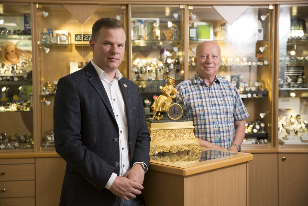 Alexander Pfeffel hat von Vater Friedrich nicht nur die Faszination für Zeitmesser geerbt, sondern bei ihm auch sein Handwerk erlernt. Nun hat der junge Uhrmachermeister den Familienbetrieb am Neulengbacher Hauptplatz übernommen und bietet seinen Kunden weiterhin detailgetreue Handarbeit. Und sollten anderswo vergriffene Ersatzteile nicht ohnehin in der umfangreichen Sammlung gelagert sein, so kann sie der traditionsbewusste Handwerker in der hauseigenen Werkstatt selbst nachbauen.