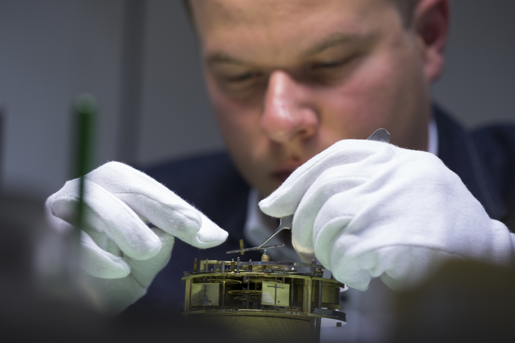 Mit großer Leidenschaft restauriert Alexander Pfeffel alte, mechanische Uhren. Denn irgendwann ist für jede Uhr die Zeit abgelaufen – und dann braucht es kunstfertige Hände, technische Erfahrung und kunsthistorisches Wissen, um Funktion und Wert der guten Stücke wieder herzustellen. Ob Restaurierung, Überholung oder bloß Reinigung – Uhrmachermeister Pfeffel lässt Uhren wieder richtig ticken.