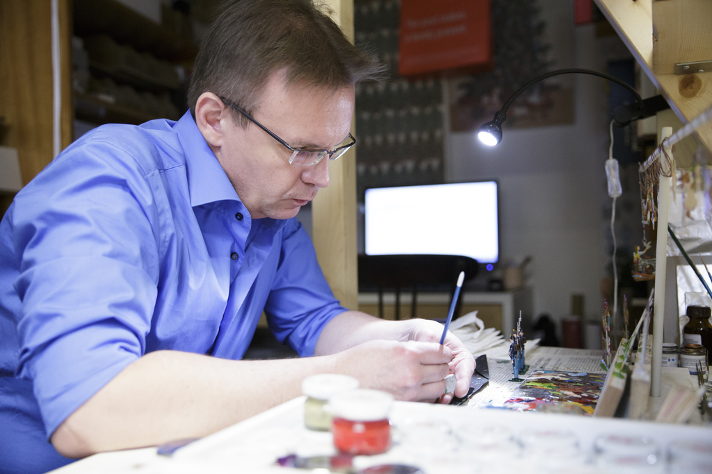 Gerhard Urbanke machte seinen Kindertraum wahr: Geschichte wird greif- und erlebbar mit seinen eigens gegossenen und bemalten Zinnfiguren. Alles begann 1997 mit einem Markt vor dem Schloß Schönbrunn: er wurde Mitglied bei divina art – Gestaltendes Handwerk – und der Kunsthandwerksmarkt vor der Karlskirche ist inzwischen ein jährlicher Fixpunkt. Und wie Eins zum Anderen kommt für den der sich bewegt: die Illustratorin Imke Behrens und Gerhard Urbanke gründen nach langjähriger fruchtbarer Zusammenarbeit die Firma Wiener Miniaturen Werkstatt.