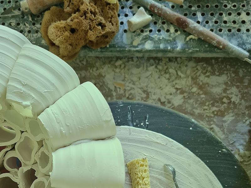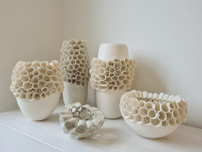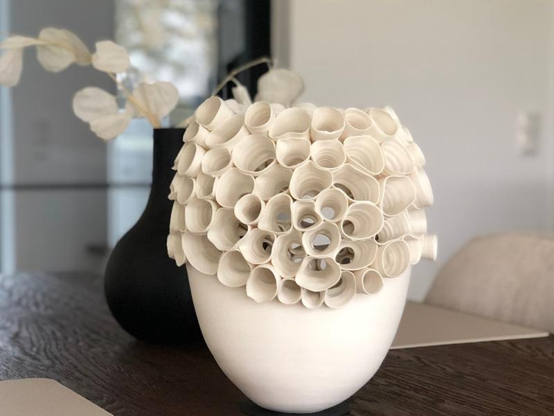 Als Porzellandesignerin und Keramikmeisterin vereinen sich in ihrer Arbeit handwerkliche Genauigkeit und gestalterische Neugier. Viele Stücke entstehen auf der Drehscheibe – aus der Bewegung heraus, die Form, Struktur und eine stille Leichtigkeit hervorbringt. Porzellan als sensibles und zugleich kraftvolles Material ermöglicht es, feine Nuancen in Oberfläche und Kontur sichtbar zu machen und das Spiel von Licht und Schatten bewusst zu gestalten. Die Details entfalten ihre Wirkung oft erst auf den zweiten Blick: sanfte Verläufe, subtile Texturen, lebendige Oberflächen.