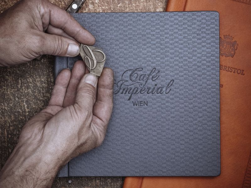 Die gehobene Gastronomie schätzt die solide handwerkliche, praxisbezogene Ausführung mit patentiertem Klemm-System zum einfachen und sicheren Fixieren von Menüblättern und die individuellen Fertigungsmöglichkeiten. Papier, Leder, Loden, Holz und Stein erhalten durch Prägung, Stick, Siebdruck und Gravur ein einzigartiges Erscheinungsbild. Auch als Visitenkartenetui oder Präsentationsmappe lieferbar.