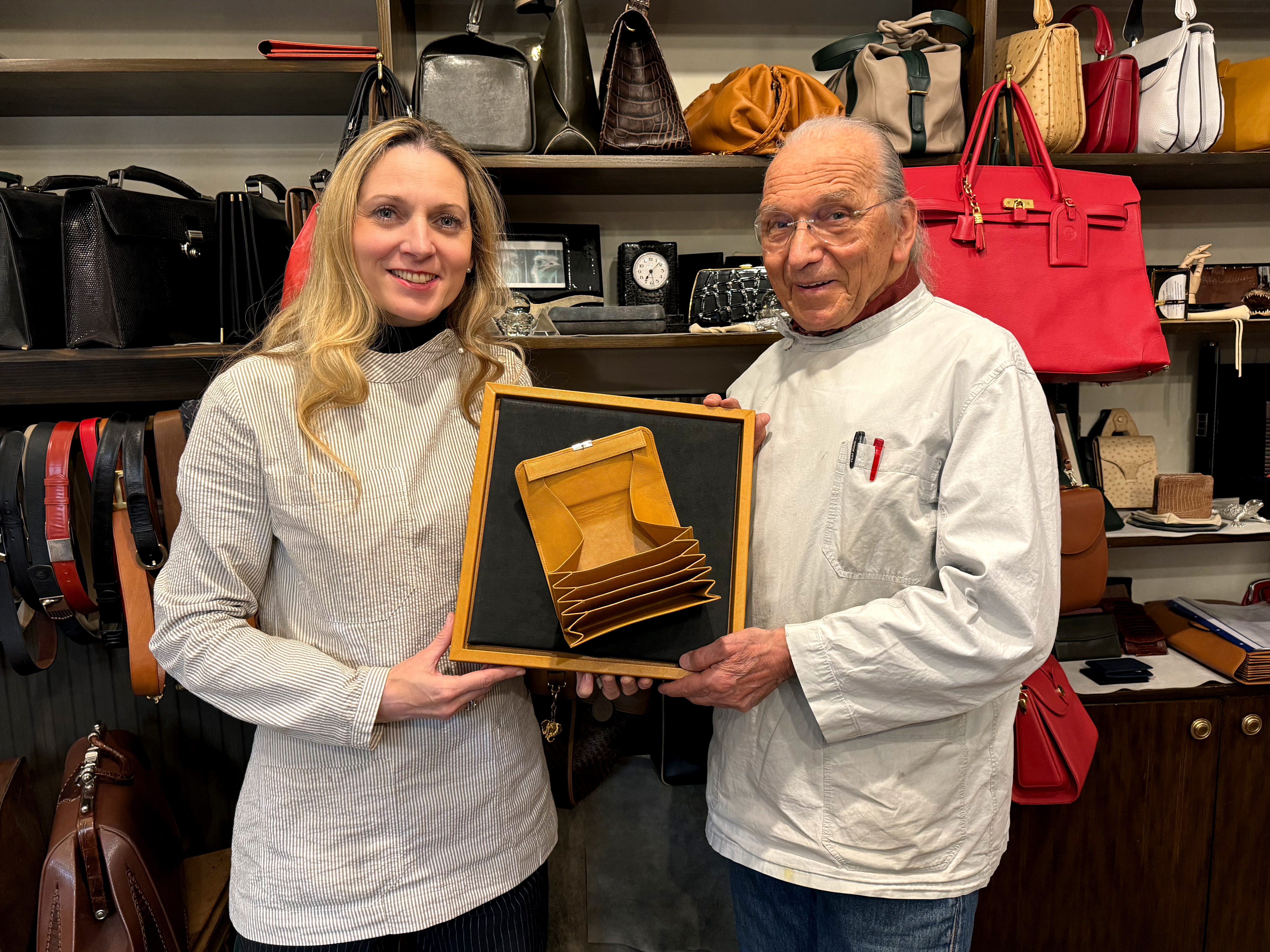 Since 2016, Gerlinde Macho has closely collaborated with Árpád Mészáros, a master of Viennese leathercraft. Mészáros dedicates his life to preserving traditional techniques and craftsmanship, and his expertise and commitment to safeguarding nearly forgotten methods make him an invaluable partner in both the creative process and the artisanal execution. Their collaboration embodies the fusion of tradition and innovation. Together, Macho and Mészáros create unique, high-quality leather goods that honor the past while representing modernity. The meticulous craftsmanship and knowledge of Árpád Mészáros significantly enhance the quality and exclusivity of these leather products. Each creation reflects a deep connection to traditional leathercraft and contemporary design.