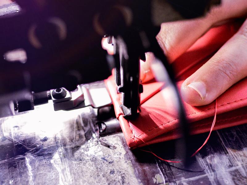 Unsere Lederprodukte werden von den Feintäschnerinnen in der Treuleben Manufaktur handgefertigt. Erst nach der sorgfältigen Überprüfung auf mögliche Unregelmäßigkeiten oder Beschädigungen wird jedes Stück des verwendeten feinen italienischen Rindvollleders zur Verarbeitung freigegeben und auf Maß zugeschnitten. Spezialmaschinen bringen es auf die passende Stärke für das jeweilige Produkt. Im Anschluss werden die einzelnen Lederstücke präzise miteinander vernäht und die Kanten mit einer geprägten Zierlinie versehen.