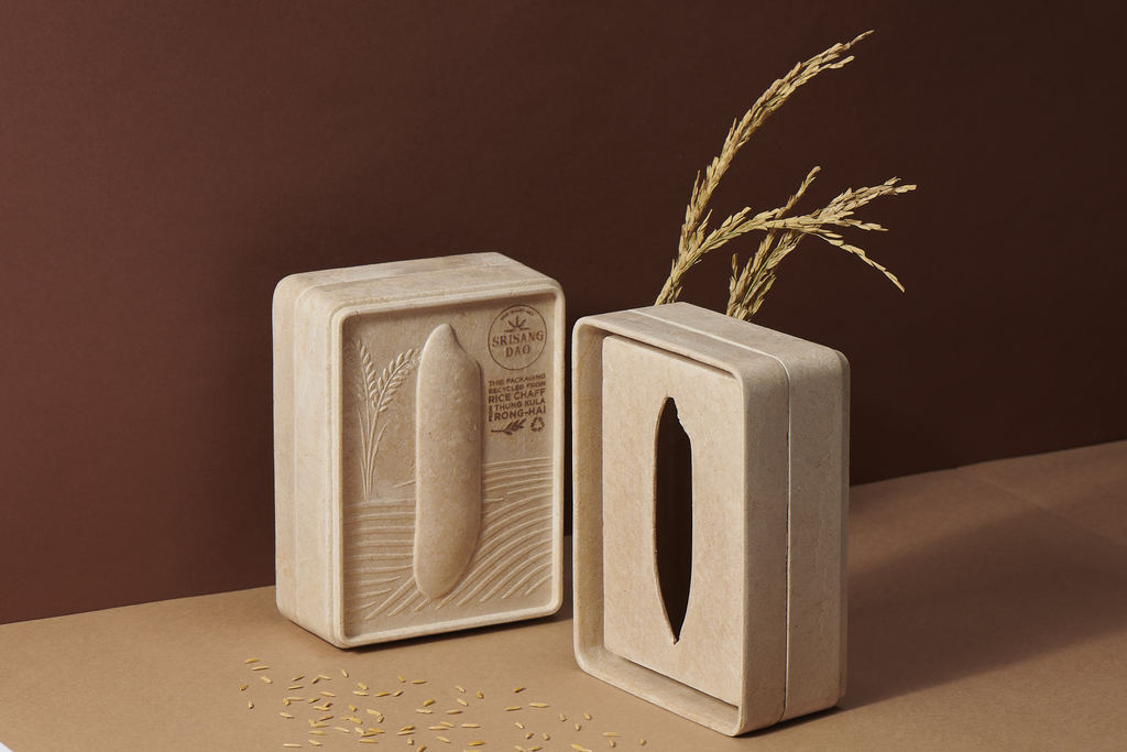 All these stories inspired Somchana Kangwanjit, Executive Creative Director of Prompt Design, a Thai design company who came up with the idea to create packaging from recycled rice husks, an agricultural waste material obtained from rice milling as this reflects the value of Khao Hom Mali Thung Kula Rong-Hai, while preserving the environment.