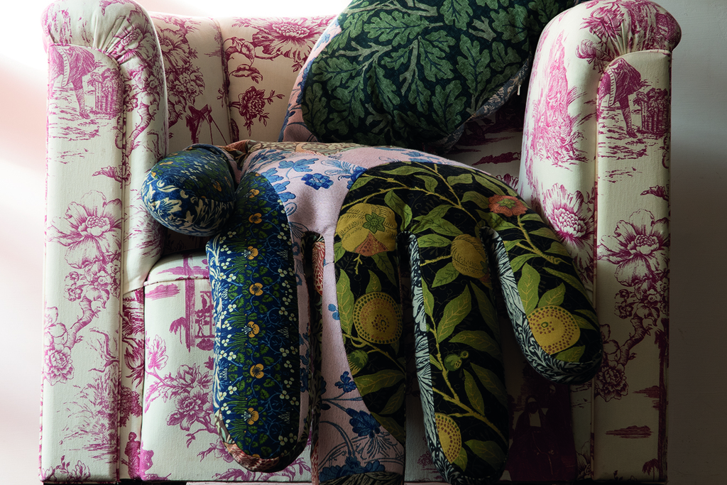 Over the last five years, we have been working with fabrics from the legendary Austrian textile manufacturer Backhausen for our collections of cushions, bolsters, quilts, and travel pillows for the home. Their 173-year-old history decisively imbues our products with an unmistakable character – fabrics with history – in their intimate leanings in the domestic space. The opulent, colourful designs by Dagobert Peche and the rigid, geometric designs by Joseph Hoffmann open up new perspectives and narratives when juxtaposed with designs by William Morris, Sanderson, Kvadrat, Rubelli Venezia, Gastón y Daniela or Designs of the Time – just to name a few.