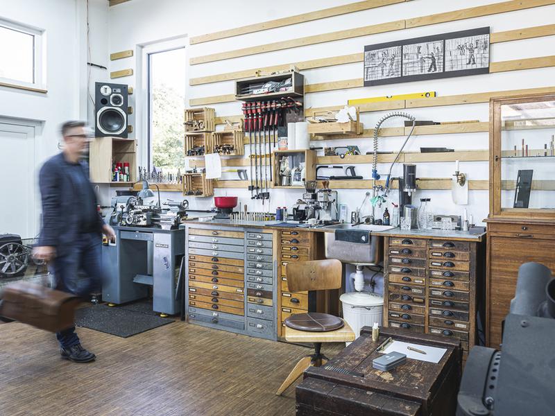 Frank Pressentin mag es nicht, wenn Dinge nach 10 Jahren noch aussehen sollen, wie am ersten Tag. Die von ihm verwendeten Materialien besitzen Charakter und Natürlichkeit. Sie verändern sich mit der Zeit, entwickeln Patina und erzählen Geschichten. Wenn ein Gewinde mal quietscht, hilft ein Tropfen Öl.